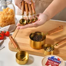 From baking fluffy cakes to preparing your morning coffee or mixing the perfect cocktail, this measuring set is your reliable kitchen partner. The durable stainless steel resists rust, stains, and corrosion, while the smooth wooden handles offer a comfortable, non-slip grip for effortless use. Whether you’re working with dry ingredients or liquids, this set provides accurate, easy-to-read measurements every time.