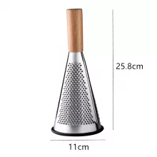 Featuring a modern conical design and three sharp stainless steel sides, this grater lets you choose from thick shreds, thin strands, or ultra-fine powders. Its tall vertical base ensures it stands steady while you work, and the ergonomic wooden handle provides a firm and comfortable grip — even during long prep sessions.