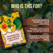 Empower yourself in the kitchen with this checklist and learn how to substitute ingredients smartly without stress. Download Substitute Ingredients Like a Pro now and start crafting flavorful, nutrient-balanced, hormone-friendly meals with confidence. Your healthier, happier cooking journey begins today!