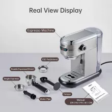 I must say, this espresso and cappuccino maker is a true marvel. Its super slim design makes it an ideal fit for my kitchen counter without taking up too much space. But't let its compact size fool you - this machine comes packed with features that have completely revolutionized my coffee experience at home! The 19 bar pump pressure guarantees a rich, full-bodied espresso every single time I use it. Plus, the multi-coffee compatibility allows me to switch between different types of coffees espressos, cappuccinos or even just ground coffee depending on my mood The stainless steel housing not only gives it a stylish look but also ensures durability which is important in any kitchen appliance. And if all these weren't enough already, the semi-automatic function has made brewing so easy and convenient that I can hardly believe how I managed without this machine before!