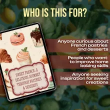Bring the taste of France into your home. Download Sweet France: A Delicious Journey Through Pastries & Desserts now and start baking beautiful, flavorful treats that will impress family, friends, and guests. Your French pastry adventure begins here!