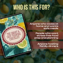 This checklist is perfect for home cooks, meal preppers, parents, foodies, and anyone who wants to master food safety while making cooking easier. It’s also a must-have for holiday hosts who want to avoid last-minute thawing mistakes and keep family meals safe.
