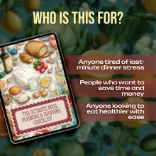 Unlike other generic meal planners, The Ultimate Meal Planning & Shopping Checklist combines practical organization with modern tech tips. You’ll not only learn how to plan smarter and shop more efficiently, but also discover how AI can take the guesswork out of meal planning—something you won’t find in most traditional guides.