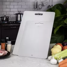 This isn’t your average plastic or wooden board. Titanium offers unmatched durability, hygiene, and performance. The non-porous surface resists smells, bacteria, and deep knife marks, while its elegant metallic finish adds a clean, high-tech aesthetic. With a sleek, functional design that packs durability and convenience into one minimalist tool, this board is made for those who value quality and simplicity in their everyday tools.