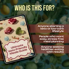 Start building confidence in your keto journey today. Download the Ultimate Keto-Friendly Meals Guide and gain the tools, strategies, and recipe ideas you need to make keto simple, sustainable, and delicious. Don’t wait—make your keto lifestyle easier right now!
