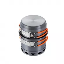 This cook set is designed with a built-in heat exchanger that boosts heat transfer efficiency by up to 30%. That means faster boiling times, reduced fuel consumption, and more time to enjoy the view. Plus, the entire set nests together compactly and even holds a 220g fuel canister and a small stove—perfect for minimalist setups.