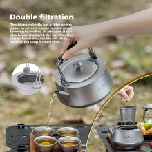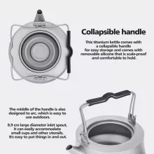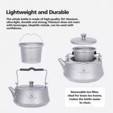 Take your outdoor adventures to the next level with this ultralight 800ml titanium kettle — designed for tea lovers, campers, and backpackers who value quality, efficiency, and simplicity. Whether you’re steeping fresh loose leaves at sunrise or boiling water for coffee on the trail, this kettle brings the comforts of home to the wilderness. Crafted from premium TA1 titanium, it offers unmatched strength without the bulk, making it an essential addition to your camping gear.