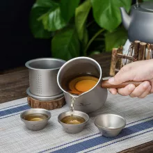 Unlike ordinary mugs, this one combines rugged outdoor performance with an elegant finish. The titanium ensures durability and heat resistance, while the wooden handle adds a natural, comforting touch. The built-in strainer is a thoughtful detail for those who enjoy quality drinks even in the wilderness. With no extra weight or bulk, it’s a small luxury that enhances your outdoor lifestyle.