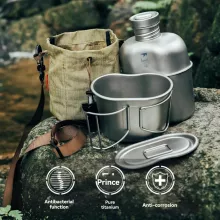 What sets this canteen mess kit apart is the combination of pure titanium construction and smart design. Not only does it resist corrosion and bacteria, it also performs flawlessly in harsh environments. The silicone handle stays cool to the touch, and the compact nesting makes it easy to carry without bulk. This is not just a bottle and cup—it’s a reliable, multifunctional tool that enhances your outdoor experience.