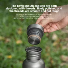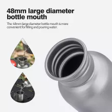 This water bottle is crafted from high-quality titanium with food-grade silicone for maximum safety. It resists deformation, holds up to rough handling, and never reacts with your drink, so water always tastes fresh and clean. With a wide 1.9-inch mouth, it’s easy to fill, pour, or even add ice cubes. The smooth, polished edges are comfortable to sip from without sharpness. Thanks to its leakproof threaded design and silicone seal, you can confidently toss it into your backpack without worrying about spills.