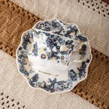Made from premium porcelain, this coffee cup is eco-friendly, durable, and safe for everyday use. The intricate blue floral patterns and shimmering gold Phnom Penh accents make it a stunning piece for morning coffee, afternoon tea, or evening hot chocolate. Whether you are hosting an elegant tea party, enjoying a quiet moment, or gifting a loved one, this cup and saucer set is the perfect choice.