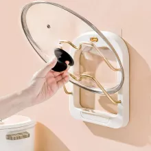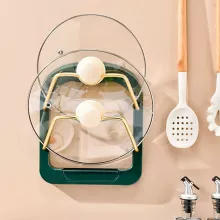This pot lid organizer is crafted from durable plastic and fits seamlessly into any kitchen setting. With dimensions of approximately 9.6 x 8.2 x 1 inches, it takes up minimal space but delivers maximum utility. It can be wall-mounted, attached to cabinet doors, or placed near your stovetop for easy reach. Best of all, the punch-free installation means you can set it up or remove it in seconds without damaging your walls or surfaces.