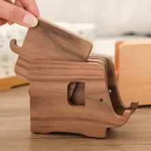 Walnut Elephant Wooden Coaster Set – Cute Puzzle Design, Heat-Resistant