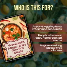 Cooking after a long day doesn’t have to be stressful. With this guide, you’ll discover how easy one-pot meals for busy weeknights can truly be. From smart prep strategies to family-tested recipes, you’ll have everything you need to bring flavor and ease to your dinner table. Download your copy today and make every weeknight a little more magical.