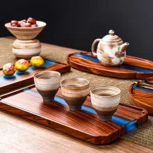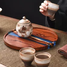 This wooden tea tray combines form and function in a unique way. The robust wooden base provides durability, while the epoxy resin details bring an artistic and retro feel. Unlike ordinary trays, this one is designed to be both practical and visually striking, making it a conversation starter for guests or a calming addition to your daily tea ritual. It’s the perfect size for small gatherings or individual use, offering just the right amount of space without being bulky.